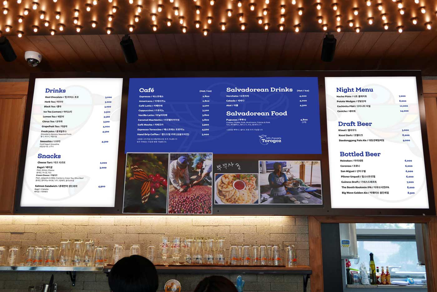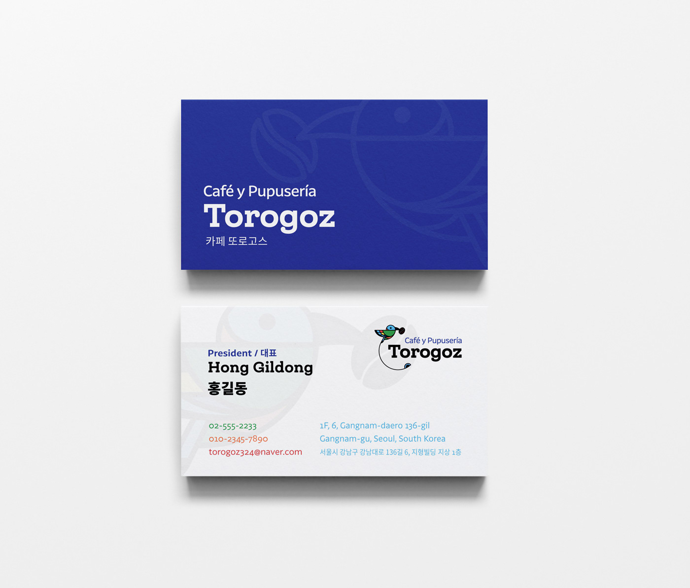 As a Salvadorean visual designer in Korea I was very lucky to be involved in the early stages of the restaurant. I started the project from the name of the venue, they needed something that was representative of El Salvador, and was easy to pronounce in Spanish, English and Korean. The name we chose was Torogoz, a colourful, medium-sized bird of the motmot family , which is the national bird of El Salvador.